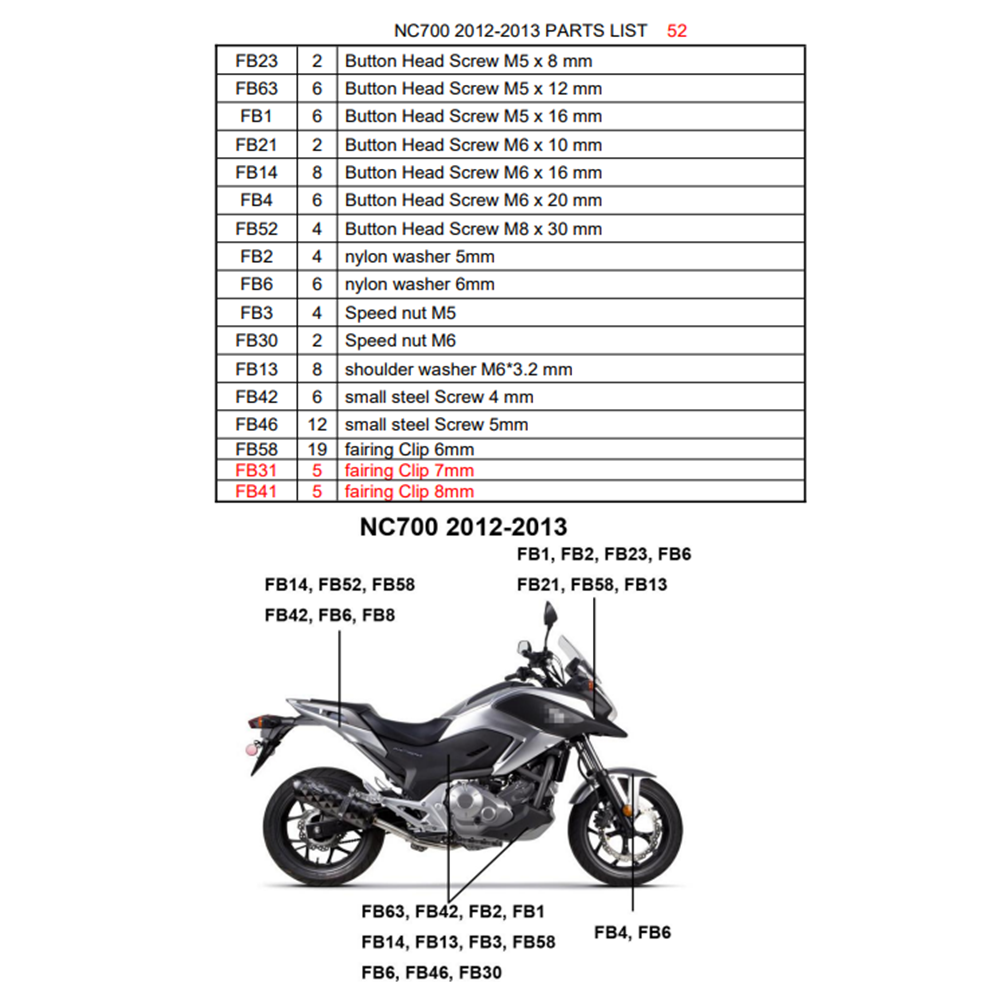 Σετ Βίδες-Κλιπάκια Για Τα Πλαστικά Honda NC700X 2012-2013