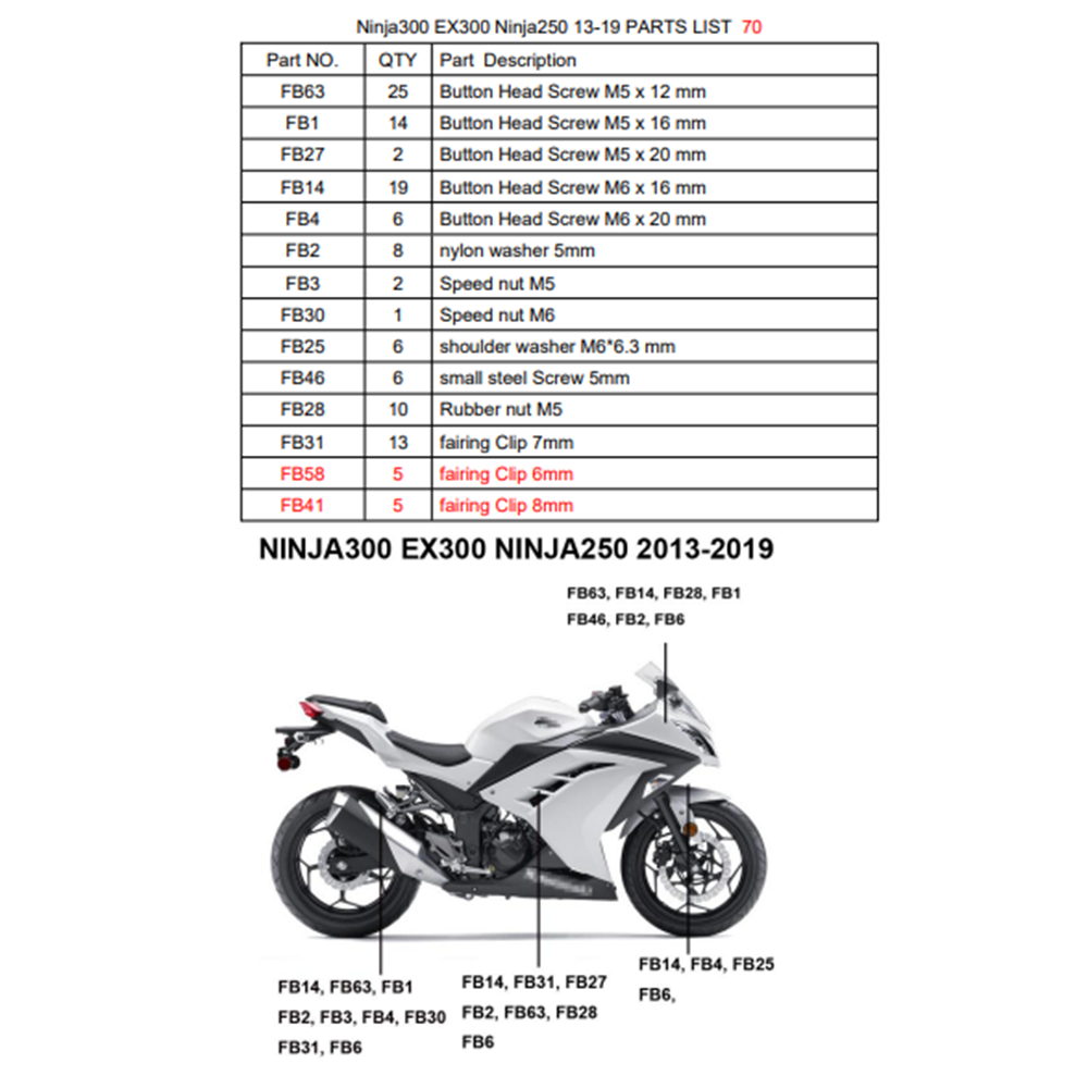 Πλήρες σετ βιδών εξαιρετικής ποιότητας, κατάλληλες για το μοντέλο kawasaki Ninja 300 EX300 Ninja 250 2013-2019 (Περιεχόμενα φωτογραφία 2)