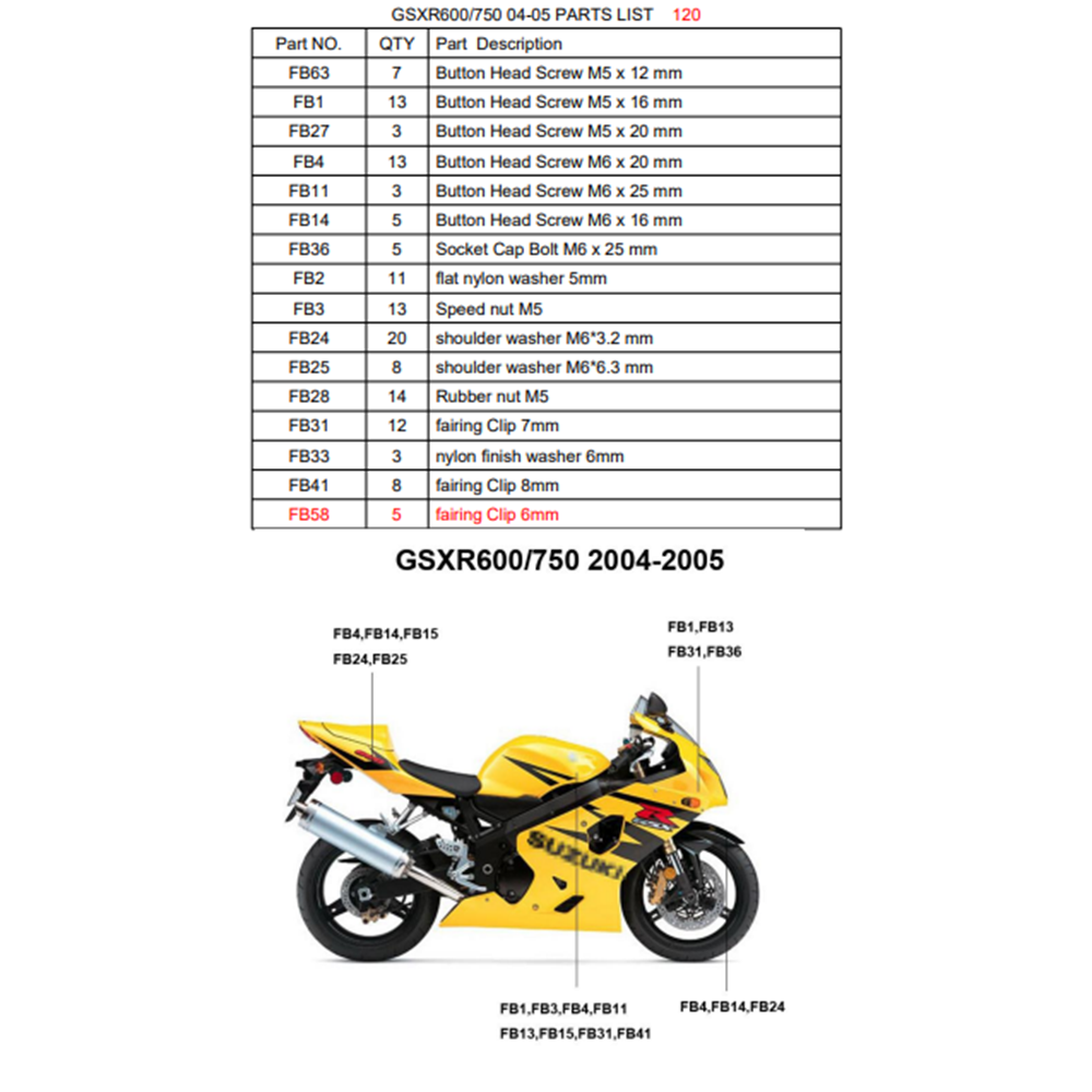 Σετ Βίδες-Κλιπάκια Για Τα Πλαστικά Suzuki GSX-R600 GSX-R750 2004-2005