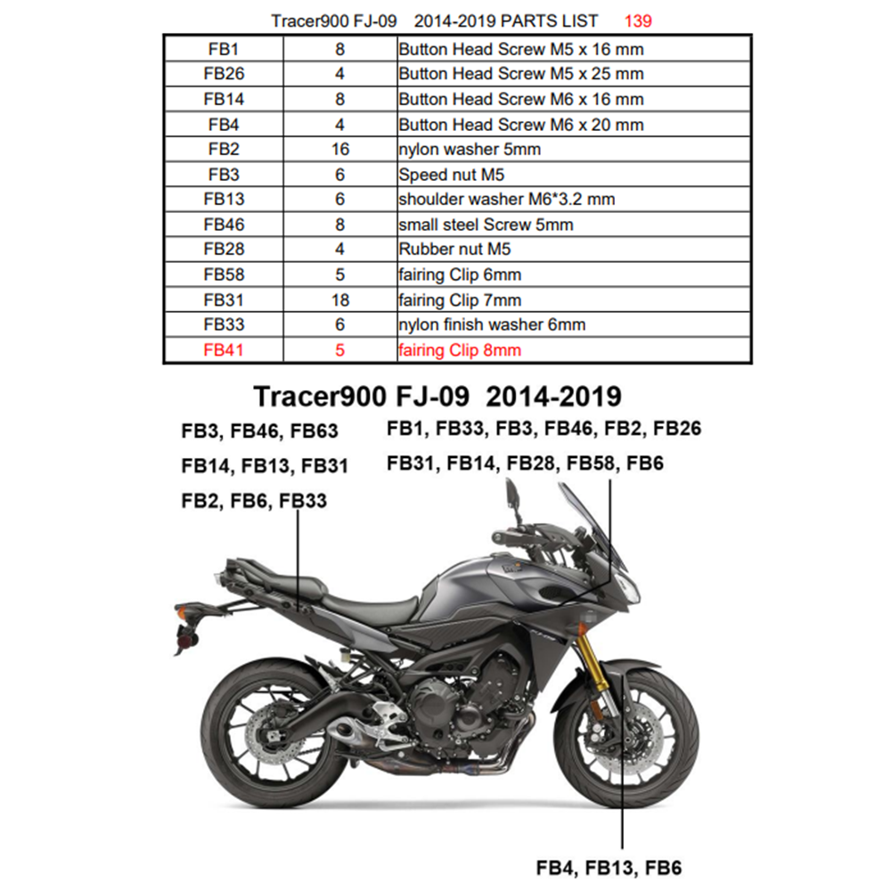 Σετ Βίδες-Κλιπάκια Για Τα Πλαστικά Yamaha Tracer 900 FJ-09 2014-2019