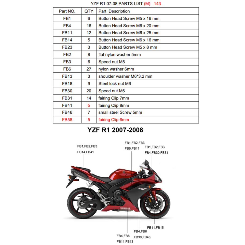 Πλήρες σετ βιδών εξαιρετικής ποιότητας, κατάλληλες για το μοντέλο Yamaha YZF-R1 2007-2008 (Περιεχόμενα φωτογραφία 2)