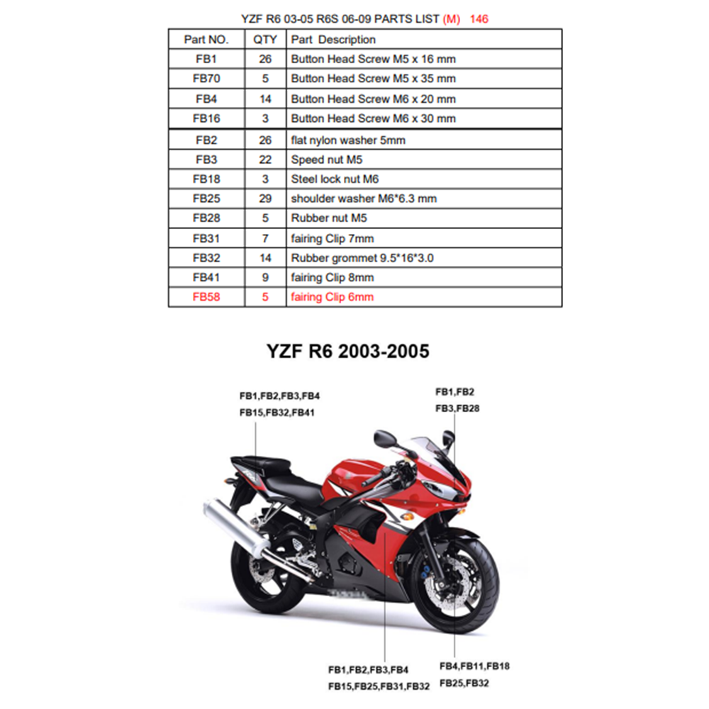 Πλήρες σετ βιδών εξαιρετικής ποιότητας, κατάλληλες για το μοντέλο Yamaha YZF-R6 2003-2005 YZF-R6S 2006-2009 (Περιεχόμενα φωτογραφία 2)
